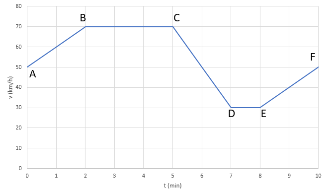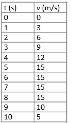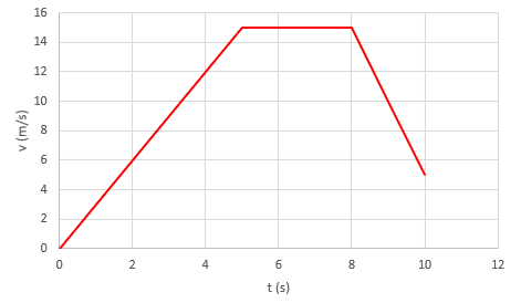 Van een autorit is een v,t-diagram gemaakt. Dit v,t-diagram is hieronder weergegeven.