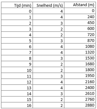 Van de sprintwedstrijd is ook een tabel gemaakt met de snelheid van de sprinter. De tabel is hieronder te zien.